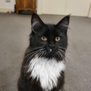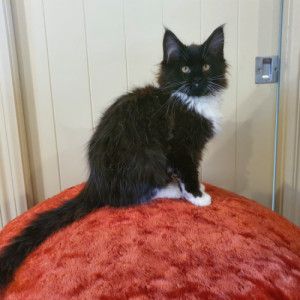 Ally is a very determined girl, she knows what she wants. She is a straightfooted Maine Coon and she a stunning black and white tuxedo girl.